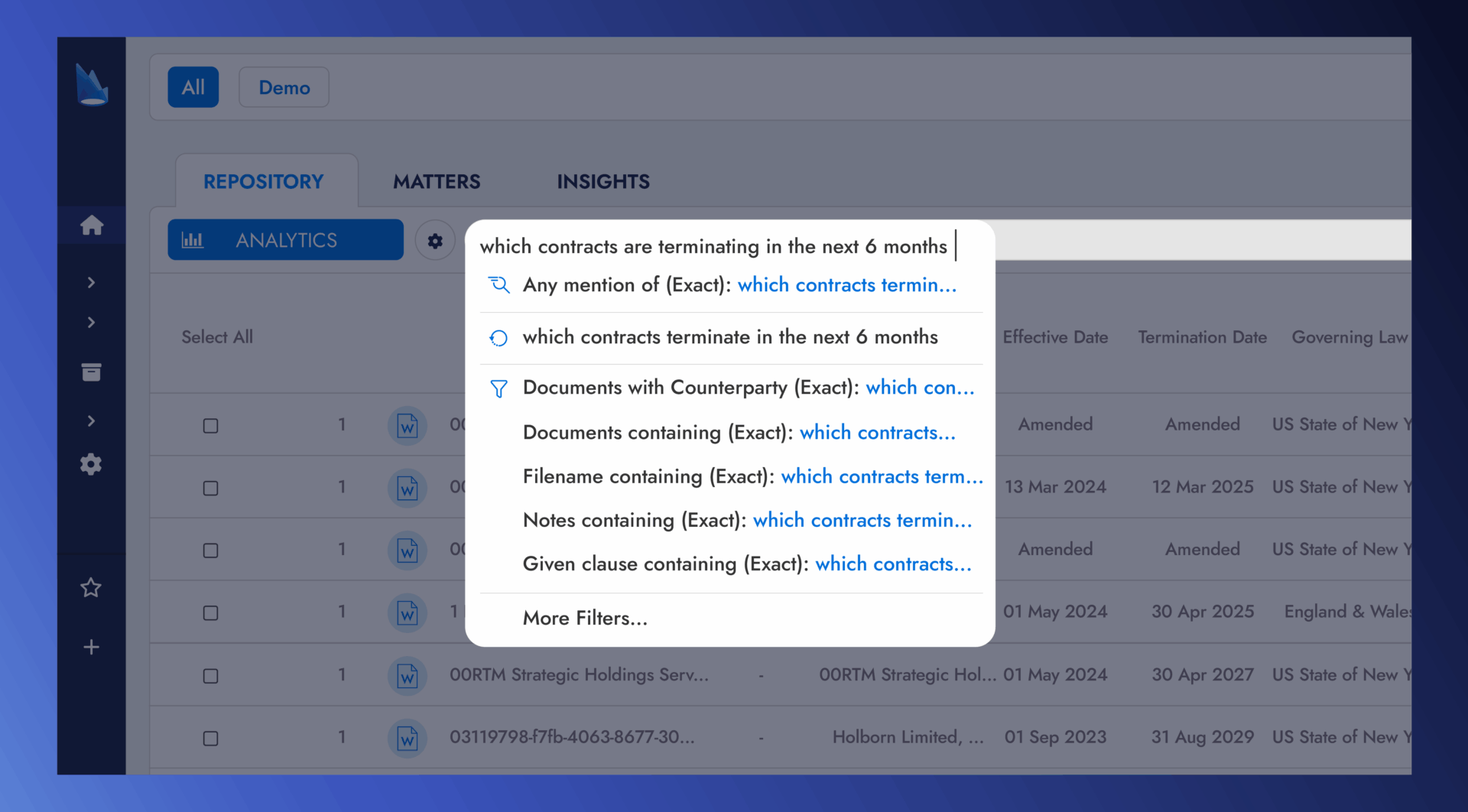 - Assess information from a wide variety of business areas, centralized and analyzed within Luminance’s AI-powered repository